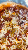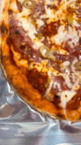 مواد تازه و باکیفیت: تهیهشده با قارچ تازه، زیتون سبز و نان پیتزای تزئینشده با کنجد برای طعمی کامل و متعادل.